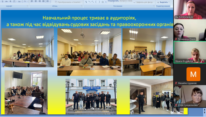 Профорієнтаційна онлайн-зустріч з учнями старших класів ліцеїв, гімназій та коледжів відбулась за участі керівництва та науково-педагогічних працівників навчально-наукового інституту №5. Директорка Оксана БРУСАКОВА ознайомила майбутніх вступників з основними перевагами навчання в ХНУВС, розповіла про сучасні освітні програми, які поєднують теоретичну підготовку з практичними навичками, а також окреслила широкі можливості для здобувачів вищої освіти після завершення навчання – від працевлаштування до подальшої академічної кар’єри. Молодь дізналася про активну роботу наукових гуртків, участь студентів у науково-практичних заходах, можливість проходження практики в установах за фахом, а також здобуття досвіду вже під час навчання. Окрему увагу було приділено умовам і порядку вступу до ННІ №5 ХНУВС, зокрема особливостям подання документів і термінам вступної кампанії.