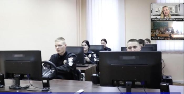 Під час зустріч зі старшокласниками Довжоцького ліцею Кам’янець-Подільської міської ради Хмельницької області старша викладачка кафедри Катерина ПЕНЗЄВА розповіла про навчально-наукові інститути та спеціальності, за якими готують фахівців у ХНУВС, про умови навчання, побуту та дозвілля курсантів і студентів. Особливу увагу викладачка звернула на особливості підготовки спеціалістів органів досудового розслідування. Вона ознайомила майбутніх абітурієнтів із перевагами навчання у виші, можливістю пройти курси у безбар’єрній автошколі ХНУВС на отримання посвідчення водія категорії «В».