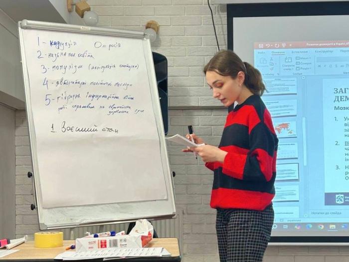 Спікерами заходу виступили викладачі кафедри соціології Київського політехнічного інституту ім. Ігоря Сікорського. Учасники обговорювали питання становлення демократичного устрою держави, його основні ознаки та засади, а також аналізували демократичний стан українського суспільства у порівнянні з іншими країнами світу.