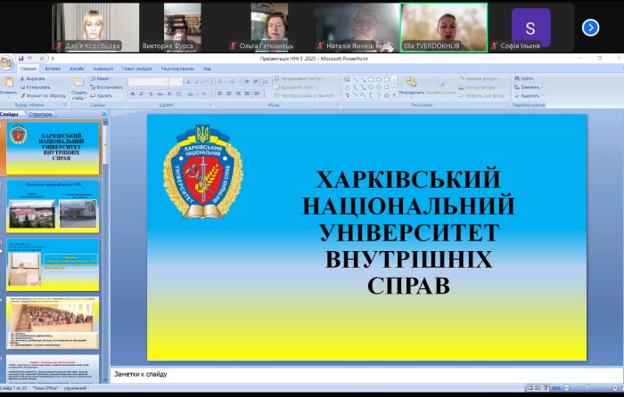 Заступниця директорки Елла ТВЕРДОХЛІБ учасникам зустрічі презентувала Харківський національний університет внутрішніх справ, розповіла про умови вступу, про навчально-наукові інститути та спеціальності, за якими готують фахівців вишу, про особливості навчання, зокрема у ННІ №5.