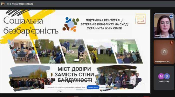 Здобувачі вищої освіти та науково-педагогічні працівники кафедри гуманітарних дисциплін Сумської філії ХНУВС долучилися до вебінару «Безбар’єрне коло для молоді». Спікерами заходу виступили: кураторка Молодіжно-волонтерського центру «М-Формація» Інна КУЛІШ, голова молодіжної ради при Житомирській ОВА Дмитро ТКАЧУК, а також керівниця молодіжного простору SkillsHub Ірина ЯЦИК.