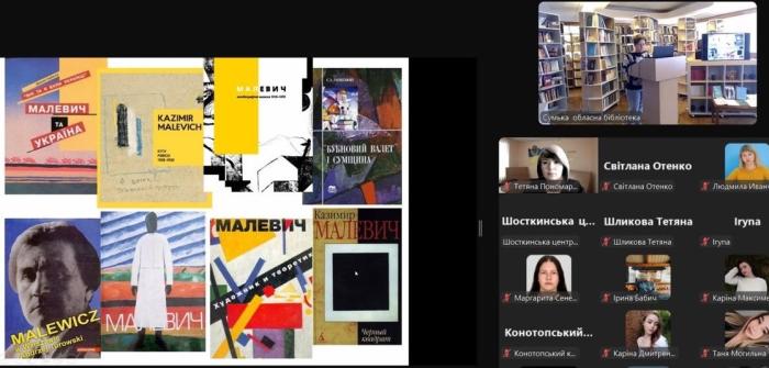 Захід проводився на базі Сумської обласної наукової бібліотеки, на якому старша наукова співробітниця Інституту української мови НАН України, кандидатка філологічних наук Ірина БРАГА розкрила тему «Мовна біографія Казимира Малевича». Через призму мовних традицій філологиня висвітлила етапи формування світогляду великого майстра.