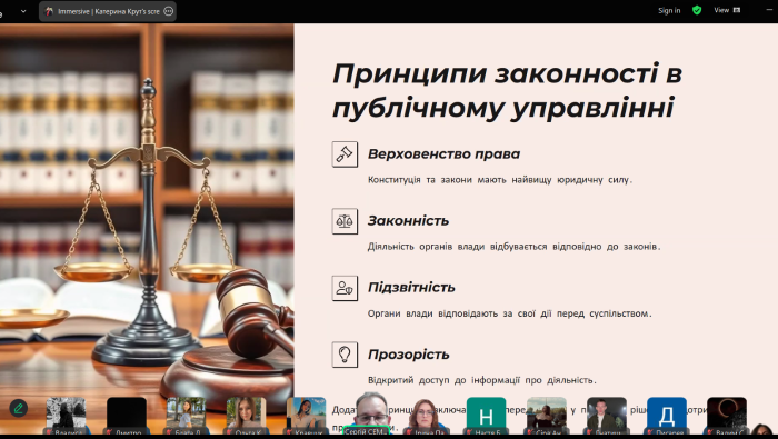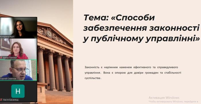Завідувачка кафедри правоохоронної діяльності ННІ №5 Ірина ПАНОВА та Катерина КРУТ спільно з т.в.о. офіцера юридичної служби 92-ї окремої штурмової бригади імені кошового отамана Івана Сірка Сергієм СЕМЕНОВИМ провели заняття з дисципліни «Адміністративне право» для першокурсників, які навчаються за освітньо-професійною програмою «Правоохоронна діяльність».