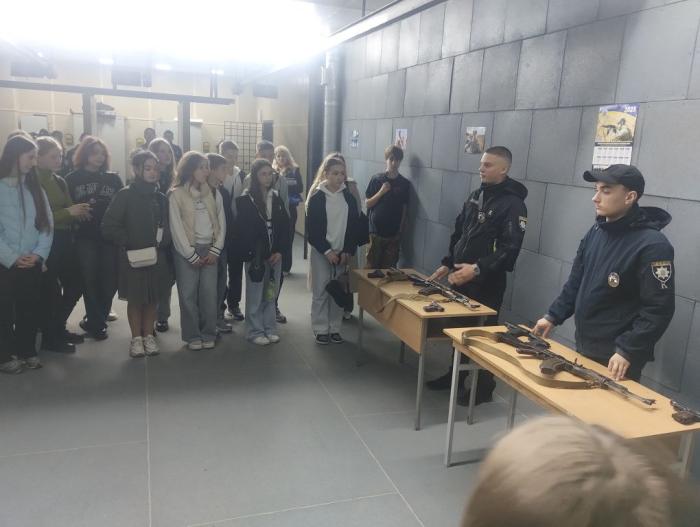 Крім того, учні відвідали тир університету, де викладач кафедри вогневої підготовки ННІ №2 Денис ГРИЩЕНКО та члени наукового гуртка кафедри Костянтин РОТАНЬ і Ренат СУЛТАНОВ-КЛИНУШКОВ провели змістовну екскурсію, ознайомивши учнів із призначенням тиру, особливостями його функціонування, правилами поводження та різновидами вогнепальної зброї, яка використовується під час навчальних тренувань. Під час зустрічі учням і педагогам також розповіли про діяльність «Безбар’єрної автошколи», у якій курсанти та студенти під час навчання мають можливість пройти навчання та отримати посвідчення водія категорії «В».