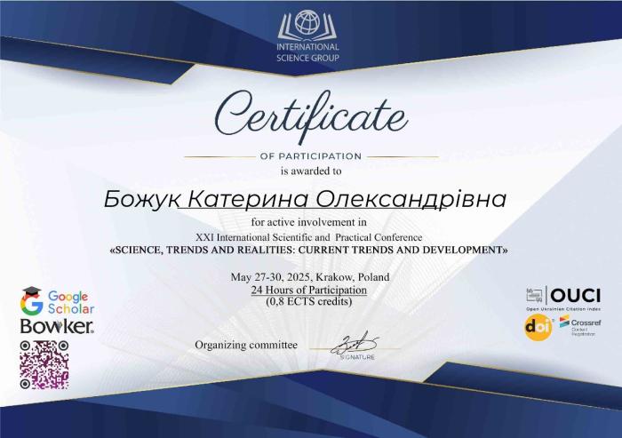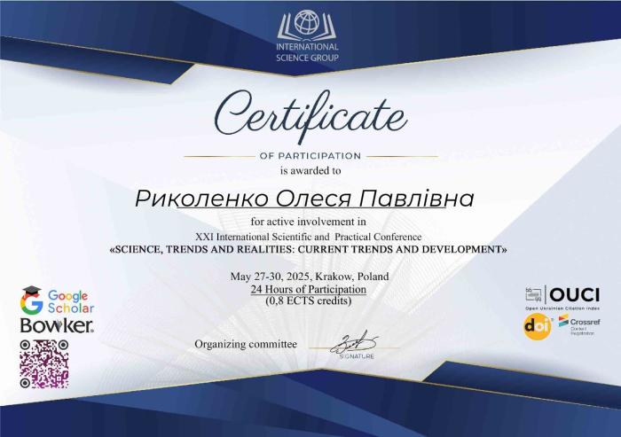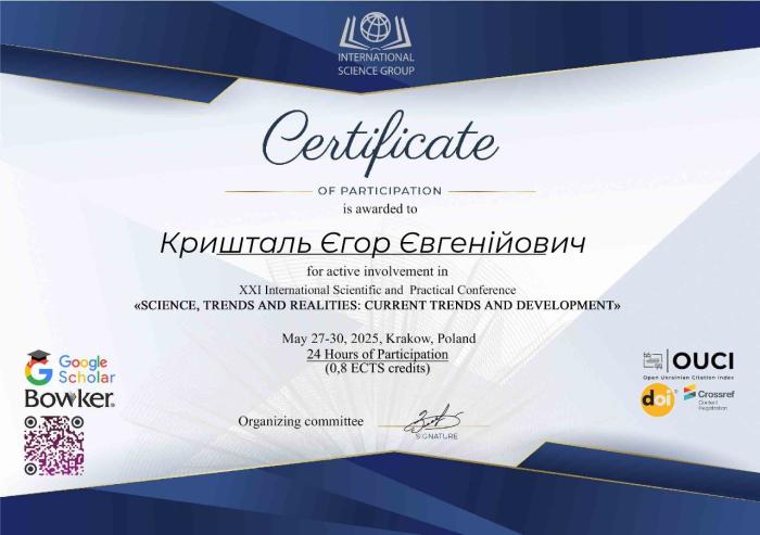 Професор кафедри оперативно-розшукової діяльності та розкриття злочинів ННІ №2, кандидат юридичних наук, старший науковий співробітник Олексій ДЕРЕВЯГІН спільно з курсантами ННІ №1 Аллою ЛАПЧЕНКО, Олесею РИКОЛЕНКО, Катериною БОЖУК, а також студентом ННІ №5 Єгором КРИШТАЛЕМ долучилися до роботи XXI Міжнародної науково-практичної конференції «Science, trends and realities: current trends and development», яка проходила у м. Краків (Польща).