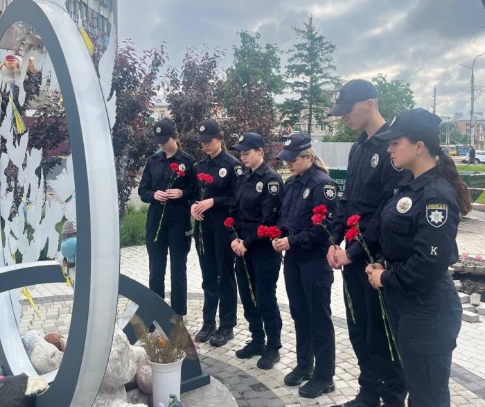 Здобувачі вищої освіти Харківського національного університету внутрішніх справ, з урахуванням безпекової складової, вшанували пам’ять загиблих українських дітей хвилиною мовчання та покладанням квітів до пам’ятних знаків, що увічнюють героїчний спротив українців і пам'ять усіх жертв війни.