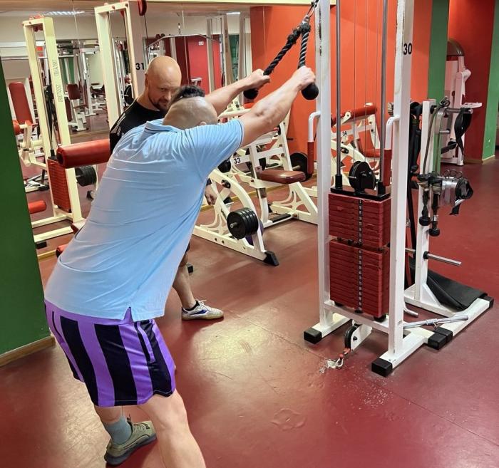 Заняття проходило в тренажерному залі й було спрямоване на зміцнення м’язів спини та рук, зокрема біцепсів. Програма тренування враховує індивідуальні особливості фізичного стану ветерана, а також базується на принципах поступового навантаження і відновлення функціональної сили.