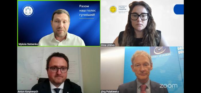 У межах серії Ukrainian Global Law Talks, проведеної Асоціацією правників України, начальниця відділу міжнародного співробітництва Тетяна МАТЮШКОВА, провідні фахівчині відділу Наталя САДОВА та Альона МУЗИЧУК, а також фахівчиня відділу Світлана ВЕЧІРКО долучилися до онлайн-обговорення нового етапу міжнародного правосуддя. Захід, присвячений рішенню Комітету міністрів Ради Європи про створення Спеціального трибуналу щодо злочину агресії проти України, проведений англійською мовою та відбувся за участі: т.в.о. директора Департаменту міжнародного права МЗС України, посла з особливих доручень МЗС України, агента України в Міжнародному суді ООН Антона КОРИНЕВИЧА та голови юридичної служби Ради Європи Йорга ПОЛЯКЕВИЧА. Модерували захід – президент Асоціації правників України Микола СТЕЦЕНКО та директорка Інституту прав людини Асоціації правників України Інна ЛІНЬОВА.