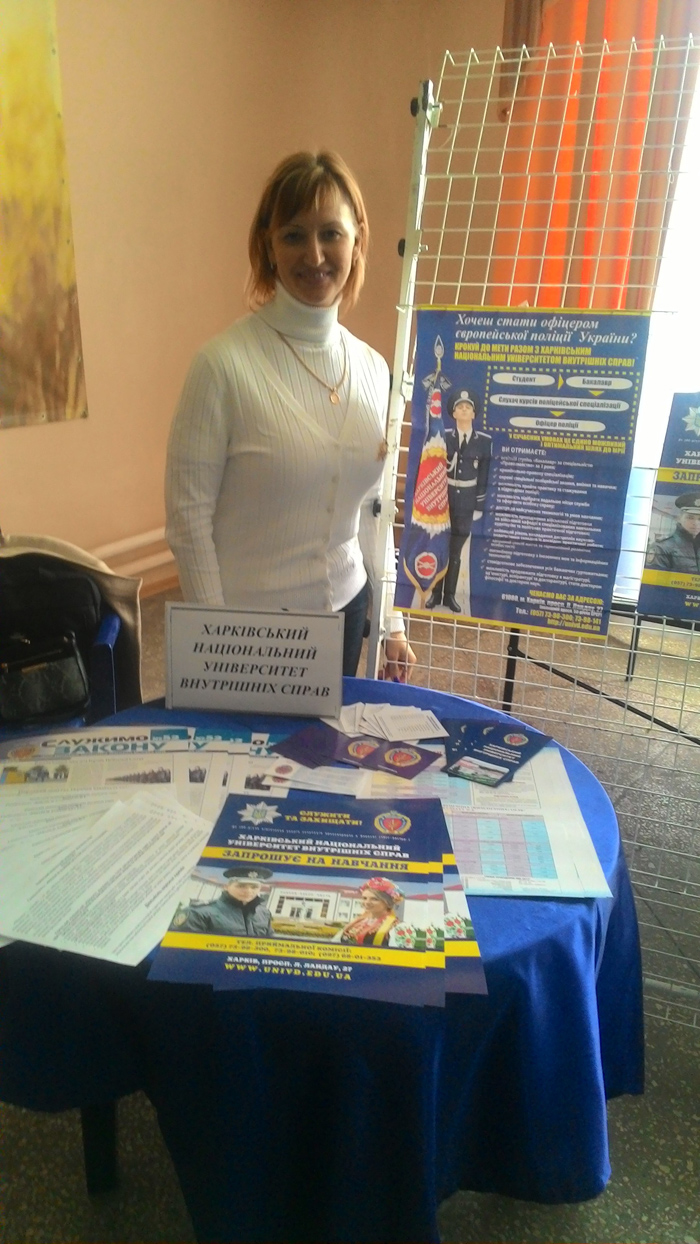 Доцент кафедри економіки та фінансів факультету № 6 Харківського національного університету внутрішніх справ Валерія Баранова відвідала профорієнтаційний захід «Професія твоєї мрії», який було організовано за підтримки Харківського обласного центру зайнятості Державного центру зайнятості для м. Дергачі та Дергачівського району. Серед тих, хто відвідав захід учні та безробітна молодь, які не визначилися щодо вибору майбутньої професії. На заході побували понад 300 відвідувачів Це – школярі Дергачівської гімназії № 3, Дергачівського навчально-виховного комплексу, Дергачівського ліцею № 2, Прудянської ЗОШ, Черкаськолозівської ЗОШ та ін.