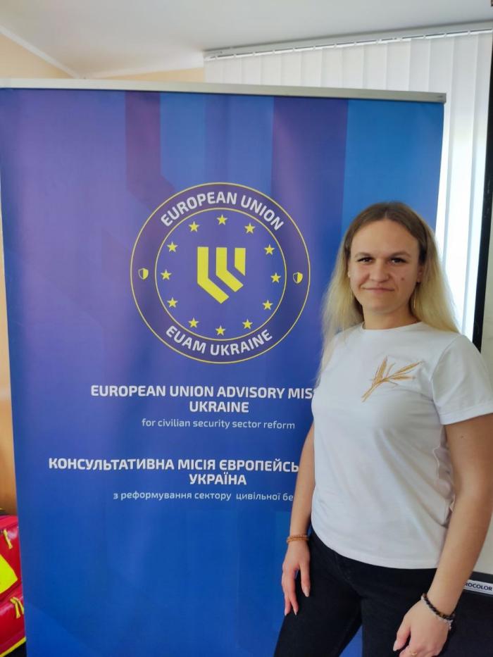 Психологиня відділення психологічного забезпечення відділу кадрового забезпечення Єлизавета ПОСНА взяла участь в тренінговому курсі підготовки тренерів з надання першої психологічної допомоги (40 годин, 17,5 кредитів ECTS), який проводився силами Європейської жандармерії та організований Консультативною місією Європейського Союзу з реформування сектору цивільної безпеки України (КМЄС в Україні).