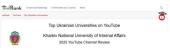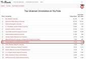 Платформа UniRank* опублікувала рейтинг найпопулярніших українських університетів за результатами діяльності їхніх офіційних YouTube-каналів. Під час укладання рейтингу враховувалися такі показники, як кількість підписників, переглядів і завантажених відео.