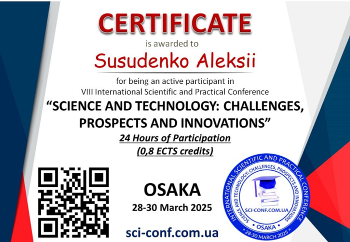 Підвищення кваліфікації та участь у наукових конференціях є важливими чинниками професійного розвитку викладачів закладів вищої освіти. Сучасні вимоги до якості освітнього процесу, інноваційні тенденції у сфері науки і технологій зумовлюють необхідність постійного оновлення знань і вдосконалення педагогічної майстерності викладацького складу.