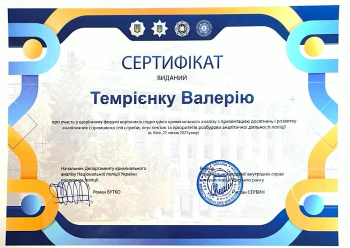 Науково-педагогічні працівники кафедри оперативно-розшукової діяльності та розкриття злочинів ННІ №2 – професор Олексій ДЕРЕВЯГІН і старший викладач Валерій ТЕМРІЄНКО долучилися до третього щорічного форуму «Актуальні питання та перспективи розвитку кримінального аналізу в правоохоронній системі України», де розглядалися питання щодо реалізації стратегії майбутнього розвитку підрозділів кримінального аналізу Національної поліції України.