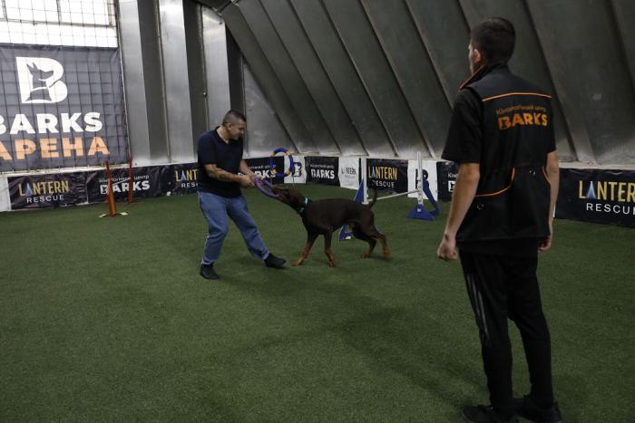 У межах співпраці відділу соціально-гуманітарної роботи Харківського національного університету внутрішніх справ із кінологічним центром “БАРКС” відбувся показово-реабілітаційний захід для учасників бойових дій. У ньому взяли участь ветерани війни – працівники Харківського національного університету внутрішніх справ та захисники, які проходять лікування і реабілітацію у Територіальному медичному об’єднанні МВС України у Вінницькій області. На базі кінологічного центру “БАРКС” вони мали змогу спостерігати за вправними діями тренованих собак та більше дізнатися про напрямки їхньої підготовки.