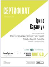 Професорка кафедри адміністративного права та процесу ННІ №3 Ірина КАЗАНЧУК взяла онлайн участь у освітньому заході, присвяченому темі «Реінтеграція ветеранів у контексті освіти», який був організований Unit 6.0 (Reskilling Ukraine) за підтримки Міністерства освіти і науки України.