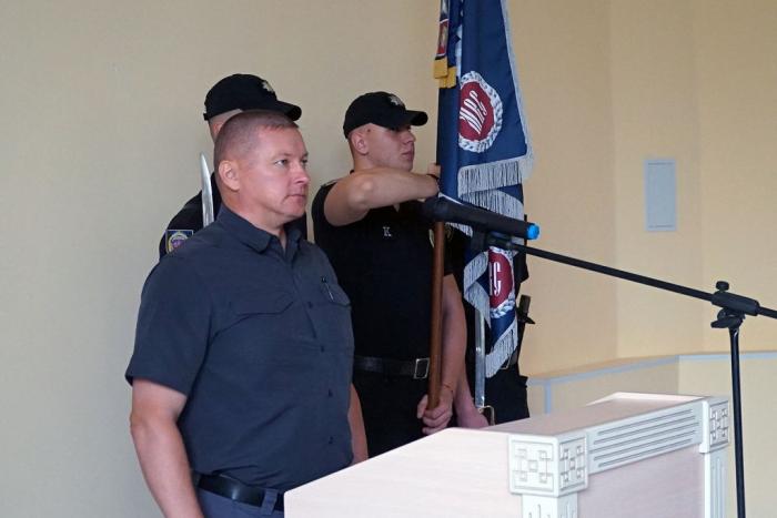 Із Днем Державного Прапора та Днем Незалежності України присутніх привітав ректор, генерал поліції третього рангу Валерій СОКУРЕНКО. Він зазначив, що День Незалежності України – це свято кожного з нас, свято нашої свободи, гідності та єдності: «Україна пройшла довгий та непростий шлях, сповнений випробувань, боротьби та перемог. Той курс, який держава обрала у 1991 році, буде залишатися незмінним. Наш обов’язок – зберегти й зміцнити незалежність України. Сьогодні ми разом формуємо наше майбутнє – еліту правоохоронців, а Сили безпеки та оборони й Збройні Сили України потребують підготовлених, відданих і вмотивованих людей. Разом ми сильні та непереможні. Слава Україні!»