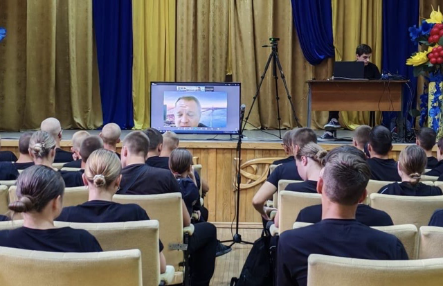 Заступник директора інституту з освітньої та науково-дослідної діяльності ННІ №1 Олексій САЛМАНОВ розповів про наукову діяльність університету, наукові гуртки кафедр, університетську антикорупційну програму, про психологічну допомогу, що надається в університеті, наголосив на важливості дотримання курсантами дисципліни та ведення здорового способу життя.