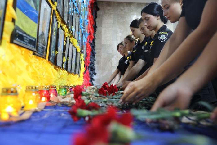 У День пам’яті захисників України на всіх локаціях Харківського національного університету внутрішніх справ курсанти, працівники та керівництво вишу поклали квіти до портретів загиблих випускників, які віддали своє життя за незалежність і свободу нашої держави.
