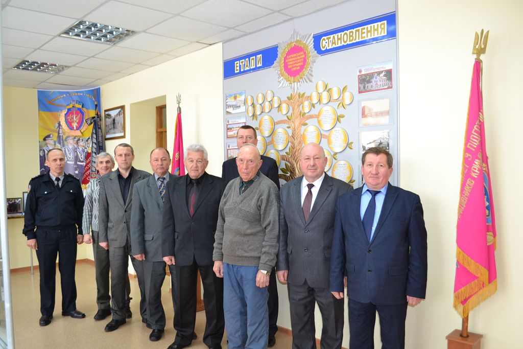 Присутній на зустрічі проректор навчального закладу Анатолій Клочко зазначив, що навчання в Харківському національному університеті внутрішніх справ спрямоване на формування поваги до своєї професії, стійкого переконання в необхідності виконання службових обов'язків і завдань, вірності Присязі та непримиренності до будь-яких порушень законності та дисципліни. І прикладом відданості обраній справі, честі та гідності офіцера правоохоронних органів є запрошені гості – легенди карного розшуку Харківщини: Євген Фалько, Володимир Карякін, Олександр Кравченко, Іван Байрачний.