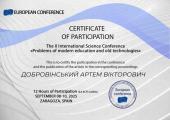 За результатами участі у Міжнародній науково-практичній конференції отримано сертифікати.