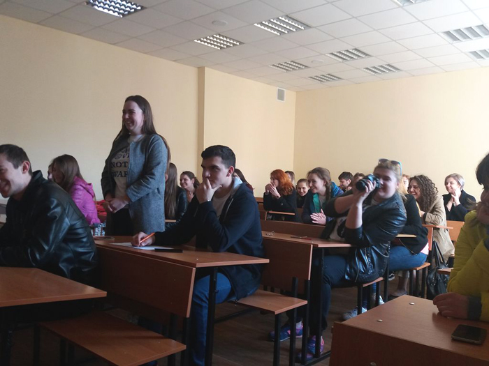 Після презентації діяльності практичних психологів у вищому навчальному закладі зі специфічними умовами навчання, Наталія Новікова відповіла на запитання студентів. Тема психологічного супроводу службової діяльності викликала жвавий інтерес у майбутніх фахівців-психологів.