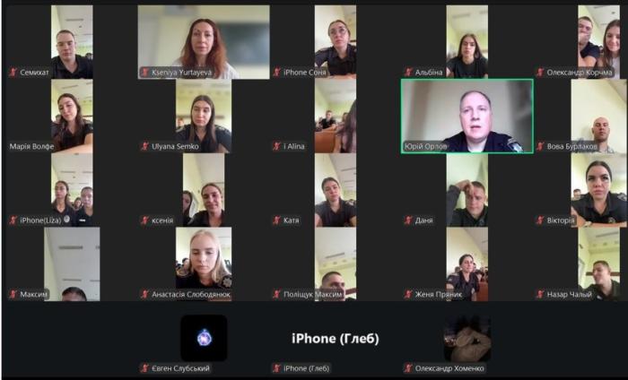 На початку лекції Ксенія ЮРТАЄВА окреслила сучасні виклики, які становить кваліфікація кримінальних правопорушень проти основ національної безпеки України для співробітників Національної поліції. Професор Юрій ОРЛОВ взяв участь у розкритті складних та актуальних питань кваліфікації колабораційної діяльності та пособництва державі-агресору. Спираючись на свій практичний досвід у Національній поліції та вагомий внесок у розвиток науки кримінального права і кримінології Юрій ОРЛОВ визначив особливості кваліфікації колабораційної діяльності, відмежування цього кримінального правопорушення він інших складів, передбачених Розділом І Особливої частини Кримінального кодексу України, та кримінальних правопорушень проти миру, безпеки людства та міжнародного правопорядку. Особливу зацікавленість у курсантів викликало питання співвідношення змісту положень міжнародного гуманітарного права та Кримінального кодексу України. Спікер навів низку актуальних прикладів із роботи Національної поліції в Харківській і Херсонській областях щодо протидії російській агресії та визначив типові помилки під час кваліфікації кримінальних правопорушень проти основ національної безпеки України. Разом із Ксенію ЮРТАЄВОЮ Юрій ОРЛОВ визначив правила подолання колізій і вирішення питання конкуренції кримінально-правових норм під час кваліфікації кримінальних правопорушень проти основ національної безпеки України.