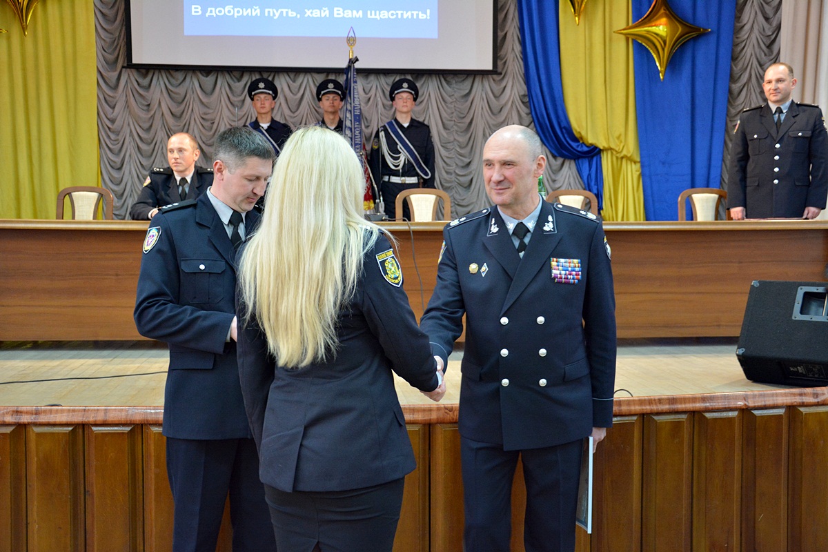Від імені випускників сержант поліції Альона Довженкова подякувала керівництву, науково-педагогічному складу університету за отримані знання, терпіння та настанови і зазначила, що випускники завжди пам’ятатимуть роки навчання в університеті, як одні з найкращих у своєму житті.