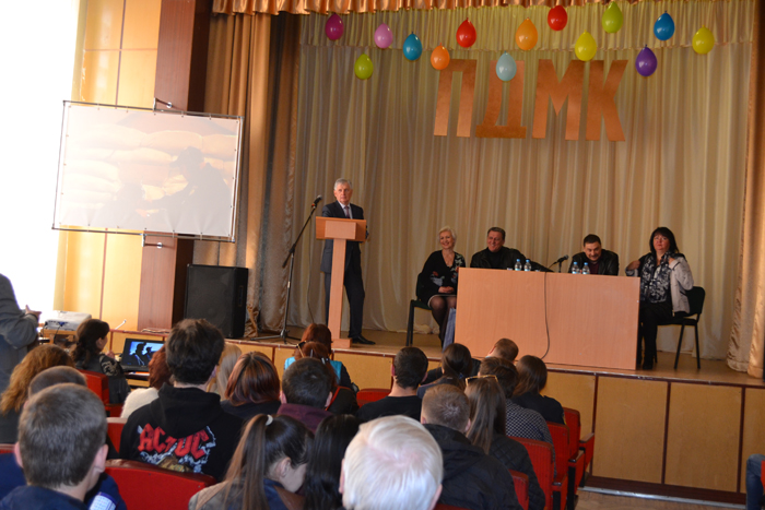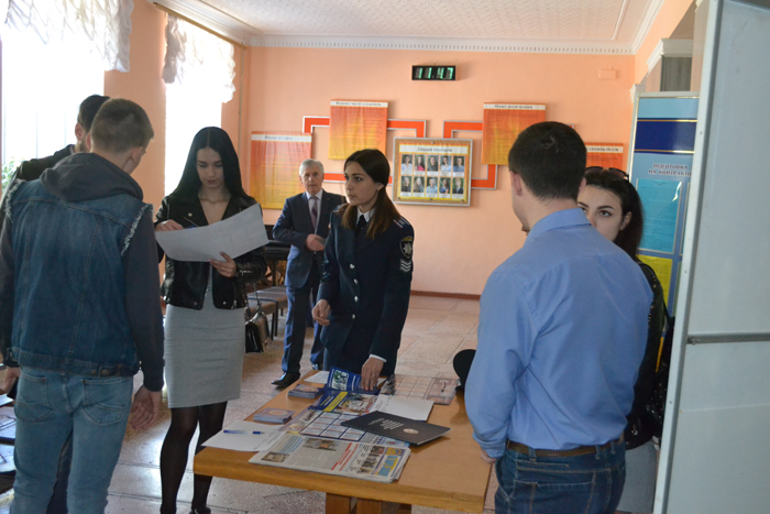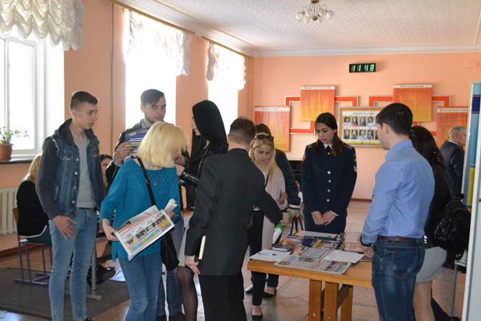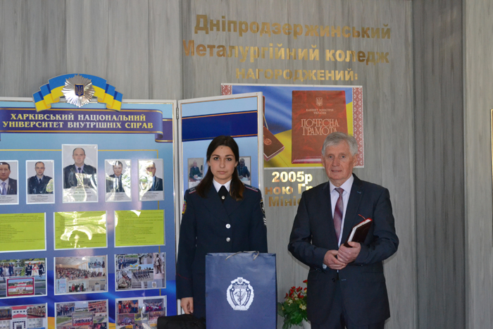 Помічник ректора по роботі з ветеранами та громадськими організаціями відділу організаційно-аналітичної роботи та контролю Валерій Московець разом із працівниками університету – провідним фахівцем відділення практичного навчання ВООП Горбачовим С.Є., методистом факультету № 6 Шульгіним О.М., курсантами факультету № 2 рядовим поліції Глущенко К. П. та факультету № 4 рядовим поліції Черновол В.С., студентами факультету № 6 Молнар К.В та Журавель А.Ю. відвідали Придніпровський державний металургійний коледж для участі у заході «День кар’єри – 2017».