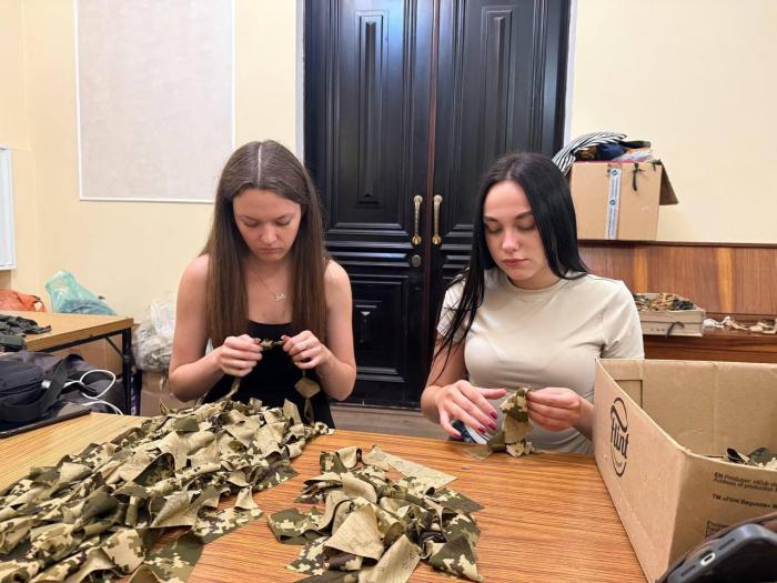 Студенти ННІ №5 продовжують долучатися до волонтерської роботи – у вільний від навчання час вони плетуть маскувальні сітки для наших захисників і захисниць. Така допомога є важливою підтримкою Збройних Сил України, адже прості на перший погляд речі здатні зберегти життя на передовій.