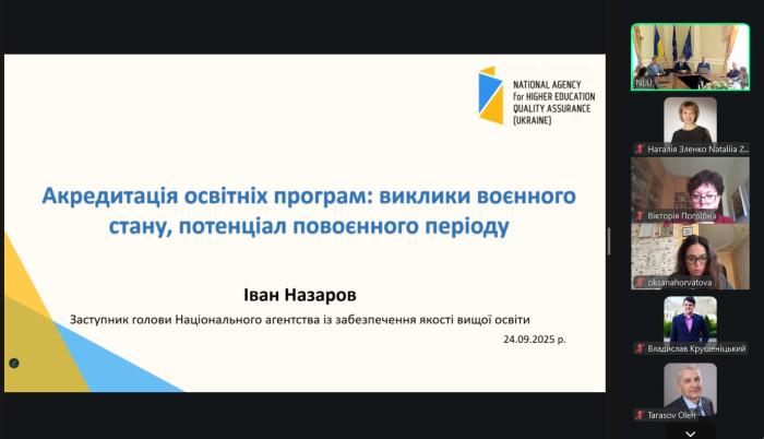 У ході дискусії обговорювалися актуальні виклики забезпечення якості юридичної освіти, зокрема у зв’язку з воєнним станом, вплив зовнішніх оцінювань (ЄФВВ, ЄДКІ) на якість підготовки правників, а також досвід інституційної акредитації в українських ЗВО.