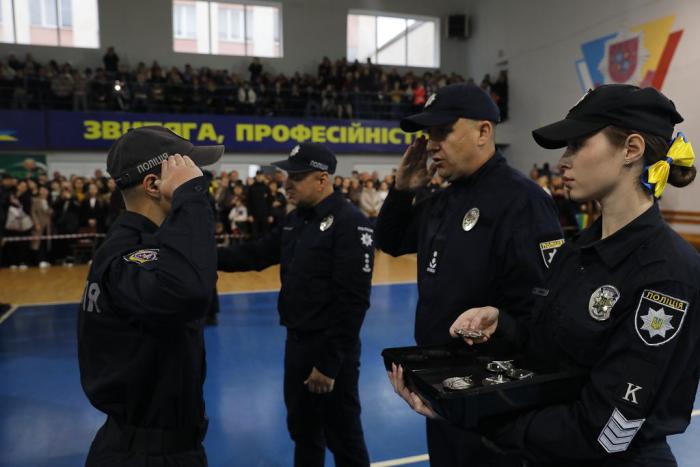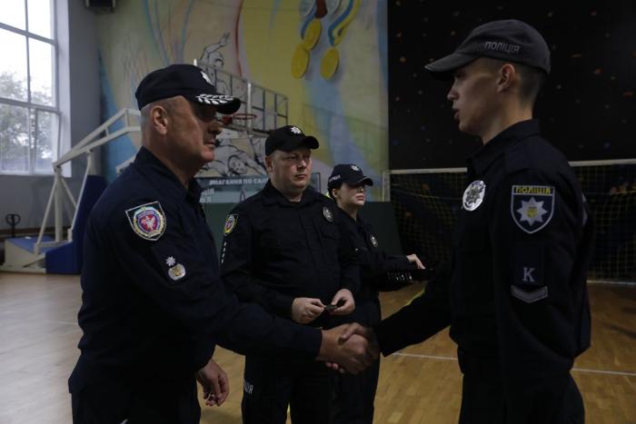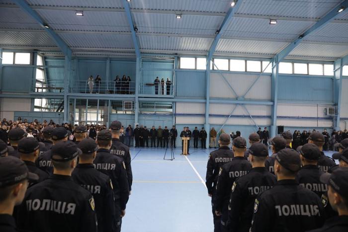 Від імені керівництва Міністерства внутрішніх справ та Національної поліції курсантів привітав Перший заступник Голови Нацполіції – начальник Головного слідчого управління Максим ЦУЦКІРІДЗЕ: «Від сьогодні ви – справжні поліцейські з усім спектром прав і обов’язків, як і ті, хто несе службу та воює на фронті. Ви обрали почесний і відповідальний шлях. Сумлінно навчайтесь, займайтесь спортом – у вас є всі можливості. Не втрачайте надію на краще майбутнє і разом наближайте Перемогу!»