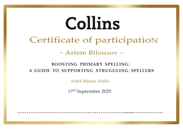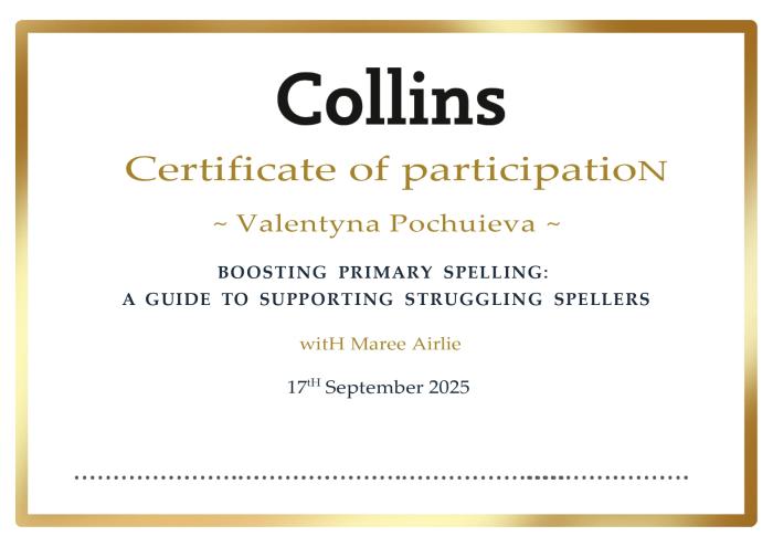 Представники кафедри мовної підготовки – завідувачка кафедри Олена СТАТІВКА, доценти цієї ж кафедри Олег ГОНЧАРУК та Валентина КОЧИНА, старші викладачі Валентина ПОЧУЄВА, Лариса САЗАНОВА та Артем БІЛОУСОВ – долучилися до Міжнародного онлайн-вебінару «Boosting primary spelling: a guide to supporting struggling spellers», організованого компанією Collins та проведеного спікеркою-лексикографом Марі ЕРЛІ. Викладачі кафедри ознайомилися із техніками, що допоможуть користуватися словником, використовувати доступні ресурси із чіткими наочними посібниками та вказівками щодо слів, які часто плутають та можуть стати важливим інструментом для підвищення рівня грамотності здобувачів освіти.