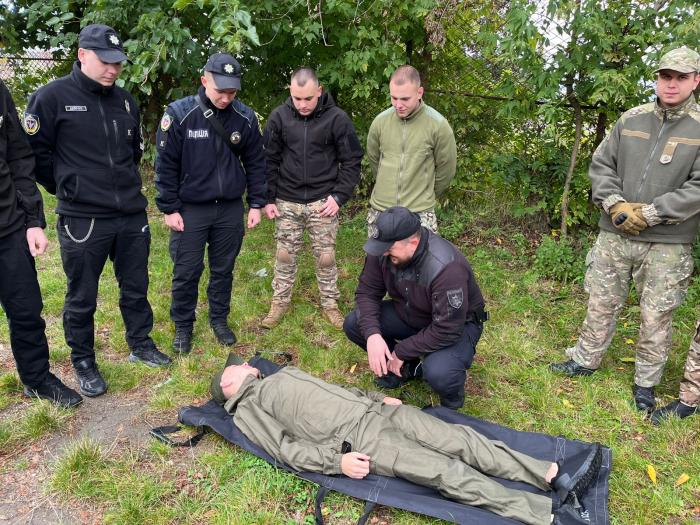 Старші викладачі кафедри тактико-спеціальної підготовки ННІ №2 Михайло БАМБУЛЯК і Віктор ЯСЬКО спільно з поліцейським офіцером громади СПОГ №1 ВВзГ Кам’янець-Подільського РУП ГУНП в Хмельницькій області Віталієм ПАРАНЮКОМ провели для здобувачів освіти ННІ №4 бінарне заняття з використанням медичних засобів і засобів евакуації на тему «Алгоритм M.A.R.C.H.».