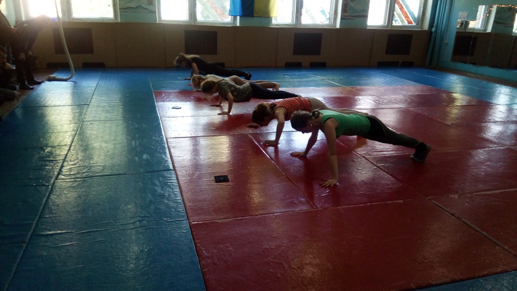 1) згинання та розгинання рук в упорі лежачи (для жінок);