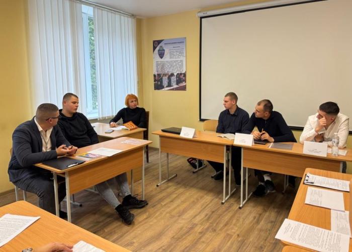 Під час заняття курсанти змоделювали судове засідання з розгляду кримінального провадження за фактом вчинення грабежу, розподіливши між собою ролі судді, прокурора, потерпілого, обвинуваченого, захисника та свідків.