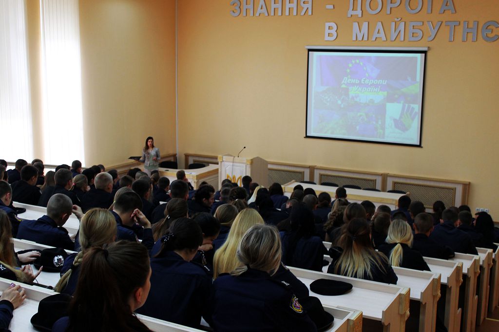 У рамках роботи університету культури відділом міжнародних зв’язків Харківського національного університету внутрішніх справ було проведено відеолекторій до Дня Європи. Лекцію для курсантів та студентів прочитала перекладач відділу міжнародних зв’язків Вікторія Філютович-Герасименко.
