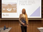 Другим заходом стала Spotlight Session «Advancing Business & Human Rights», що відбулася англійською мовою в межах Програми наставництва з бізнесу та прав людини для молодих українських дослідників. Програму реалізовано Національним юридичним університетом імені Ярослава Мудрого та Інститутом Рауля Валленберга з прав людини (Швеція) за підтримки Шведського інституту. Юлія ЗАГУМЕННА представила доповідь англійською мовою на тему «Digitalization as a Tool for Ensuring National Security and Challenges for Protecting Human Rights in the Business Sphere», присвячену аналізу ролі цифровізації як інструменту забезпечення національної безпеки та водночас викликам для захисту прав людини в умовах цифрової трансформації бізнесу.