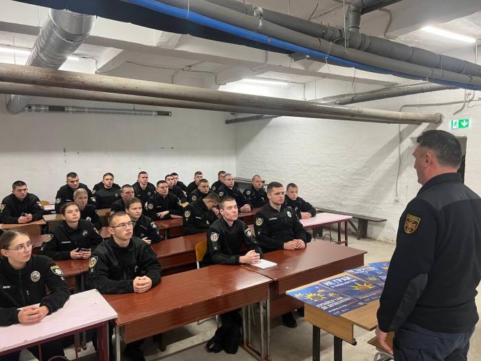 Під час бінарного заняття на тему «Ідентифікація вибухонебезпечних предметів» курсанти ННІ №1 ознайомилися з видами саморобних вибухових пристроїв, їх ймовірними місцями розташування, а також із порядком дій у разі виявлення загрози або скоєння терористичного акту.