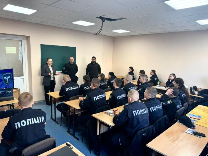 До розмови приєдналася начальниця сектору з дотримання прав людини Вінницького районного управління поліції ГУНП у Вінницькій області Олена СУВОРОВА. Вона обговорила з курсантами роль поліцейського в сучасному суспільстві, наголосила на важливості дотримання прав людини та виховання високих моральних принципів у службовій діяльності.