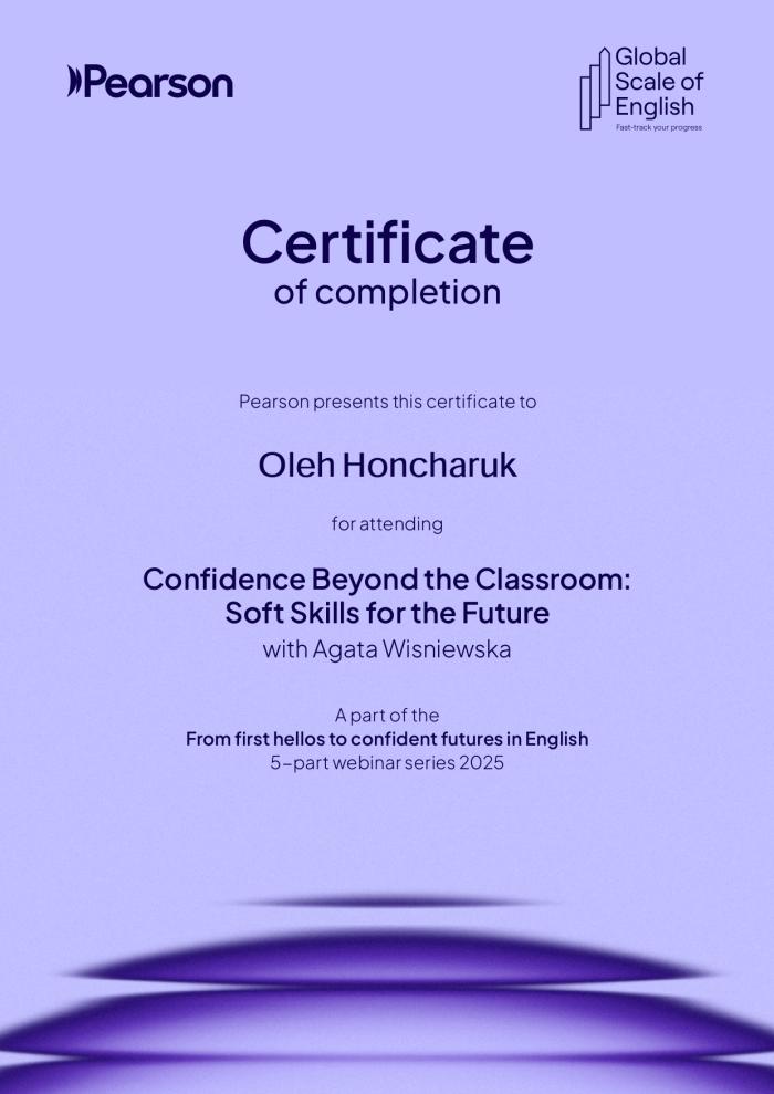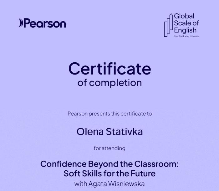Викладачі кафедри ознайомилися із практичними методами інтеграції глобальної шкали англійської мови Pearson та шістю моделями м’яких навичок у планування занять. Набутий досвід допоможе забезпечити розвиток необхідних соціальних компетенцій паралельно з розвитком мовних навичок та підготувати здобувачів освіти до успішної командної роботи в динамічних середовищах, адаптивності та стійкості.