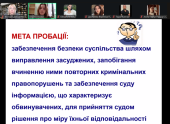 Альона ЛІСОВА, спираючись на власний професійний досвід, роз’яснила порядок і особливості застосування норм, що регулюють кримінально-виконавчі правовідносини у сфері пробації. Вона розповіла, що система пробації в Україні охоплює наглядові, виховні та соціально-профілактичні заходи, спрямовані на виправлення правопорушників без ізоляції від суспільства. Її головна мета – ресоціалізація осіб, які вчинили злочин, і зниження рівня повторної злочинності.
