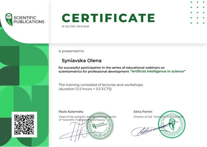 Професорка кафедри правоохоронної діяльності ННІ №5, докторка юридичних наук, професорка Олена СИНЯВСЬКА прослухала вебінар для науковців на тему «Штучний інтелект в науковій діяльності», який було проведено науково-навчальним центром компанії «Наукові Публікації». Окрім практичних питань щодо можливості використання ШІ в науковій діяльності, велику увагу було приділено етиці використання штучного інтелекту, недолікам та перешкодам використання ChatGPT, а також основним тенденціям розвитку штучного інтелекту в науково-дослідницькій сфері.