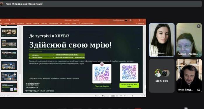 У межах профорієнтаційної роботи кафедра кримінального права та кримінології навчально-наукового інституту №5 провела змістовний онлайн-захід для здобувачів освіти КЗ «Слобожанський ліцей №1» Слобожанської міської ради Чугуївського району Харківської області.