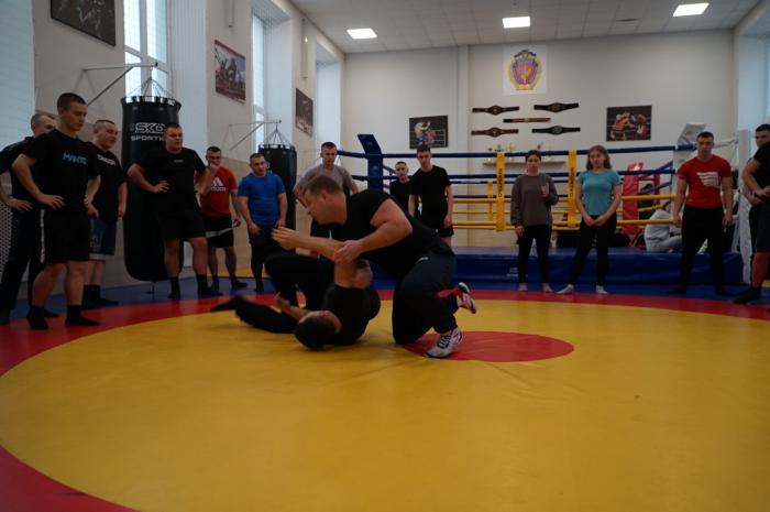 Для курсантів другого курсу навчально-наукового інституту №1 відбулося практичне заняття з вільної боротьби, яке провели представники кафедри спеціальної фізичної підготовки ННІ №2 спільно із заслуженим тренером України Дмитром ПАСЕНКОМ.