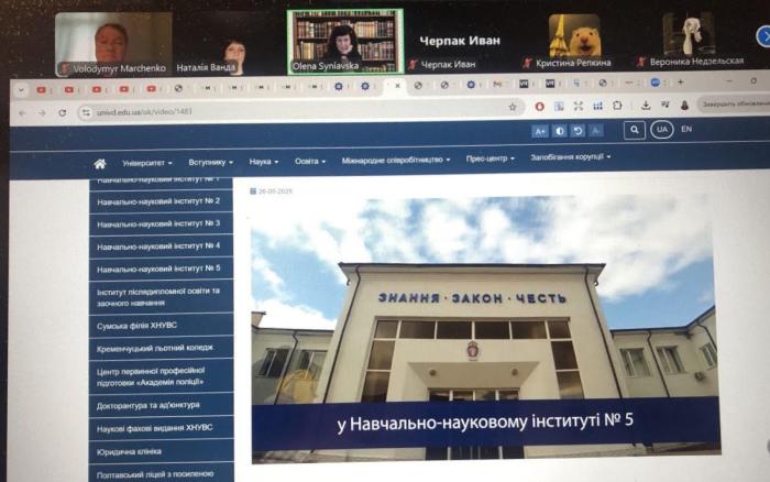 Професори кафедри правоохоронної діяльності ННІ №5 Олена СИНЯВСЬКА та Володимир МАРЧЕНКО в онлайн-режимі провели зустріч з учнями випускних класів КЗ «Харківський ліцей №167 Харківської міської ради». Вони представили відеопрезентацію університету, розповіли про його історію та традиції, освітні програми й конкурентні переваги навчання у ХНУВС.