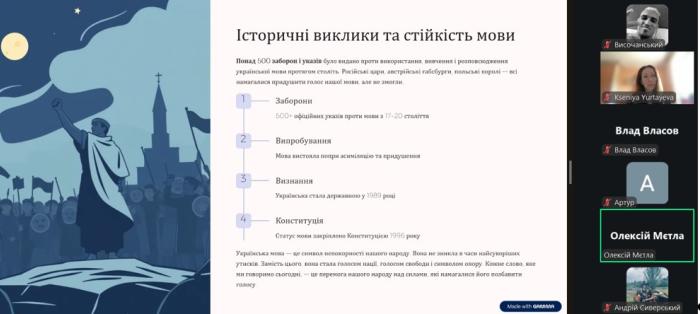 Курсанти ознайомилися з історією формування української писемності, дізналися цікаві факти про її автентичність і багатство, а також обговорили внесок видатних культурних та громадських діячів у становлення національної мови й літератури.