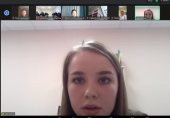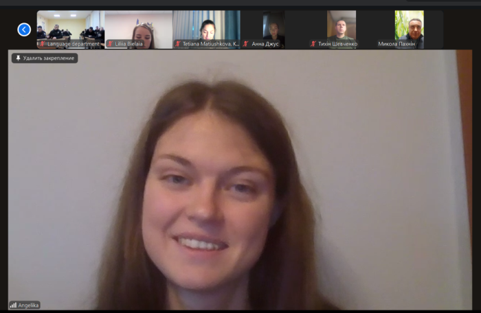 Завідувач кафедри кримінального права та кримінології ННІ №5 Микола ПАХНІН представив студентку 5 курсу (магістратура) Європейського університету в Познані імені Роберта Шумана Ангеліку ХАЙДЕР. Учасникам зустрічі було цікаво дізнатися, що навчання в Польщі має значною мірою харитативний та практичний характер. Наприклад, Ангеліка навчається заочно, а практику з психології проходить у початкових школах, лікарнях і соціальних установах, надаючи психологічну допомогу тим, хто її потребує.