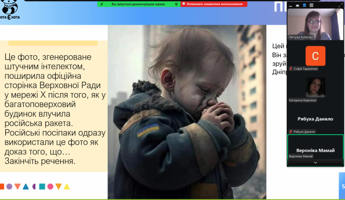 З метою розвитку критичного мислення та удосконалення навичок медіаграмотності доцентка кафедри гуманітарних дисциплін та українознавства, кандидатка філологічних наук Наталія КОБИЛКО як сертифікована тренерка провела антифейкову інтелектуальну гру «НотаЄнота» для студентів-психологів. Учасники змагалися в чотирьох раундах: «Най-най-най. Правда чи фейк», «Новомова», «Ребуси», «Не вір очам своїм», де здобувачі освіти мали продемонструвати свою уважність, знання з історії та культури України, уміння орієнтуватися в потоці інформації сучасних медіа, знаходити ознаки мови ворожнечі та пропаганди, а також розрізняти поняття «дезінформація», «місінформація» та «малінформація». Студенти активно дискутували, наводили переконливі аргументи, а головне – довели, що вміють розрізняти правду і фейк. Компетентне журі визначило переможців змагання й нагородило їх дипломами. Наприкінці гри Наталія КОБИЛКО презентувала комікси «НотаЄнота», які допоможуть удосконалити навички медіаграмотності здобувачів освіти.