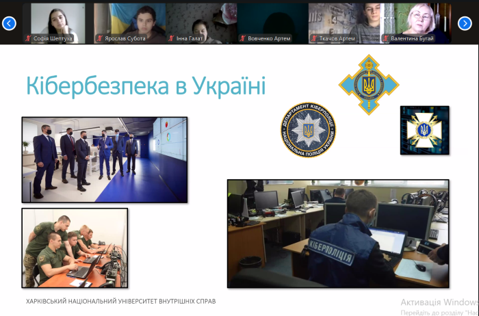 Заступниця директора навчально-наукового інституту №5 Елла ТВЕРДОХЛІБ і старший викладач кафедри кібербезпеки та DATA-технологій Михайло ЦУРАНОВ провели онлайн-зустріч з учнями Дергачівського ліцею №3 на тему «Кібербезпека: захист і професія».