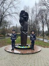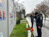 Представники Харківського національного університету внутрішніх справ поклали квіти до пам'ятних знаків і хвилиною мовчання вшанували героїв, які загинули у Києві під час Революції Гідності та усіх, хто ціною власного життя у різні роки виборював свободу та незалежність України.